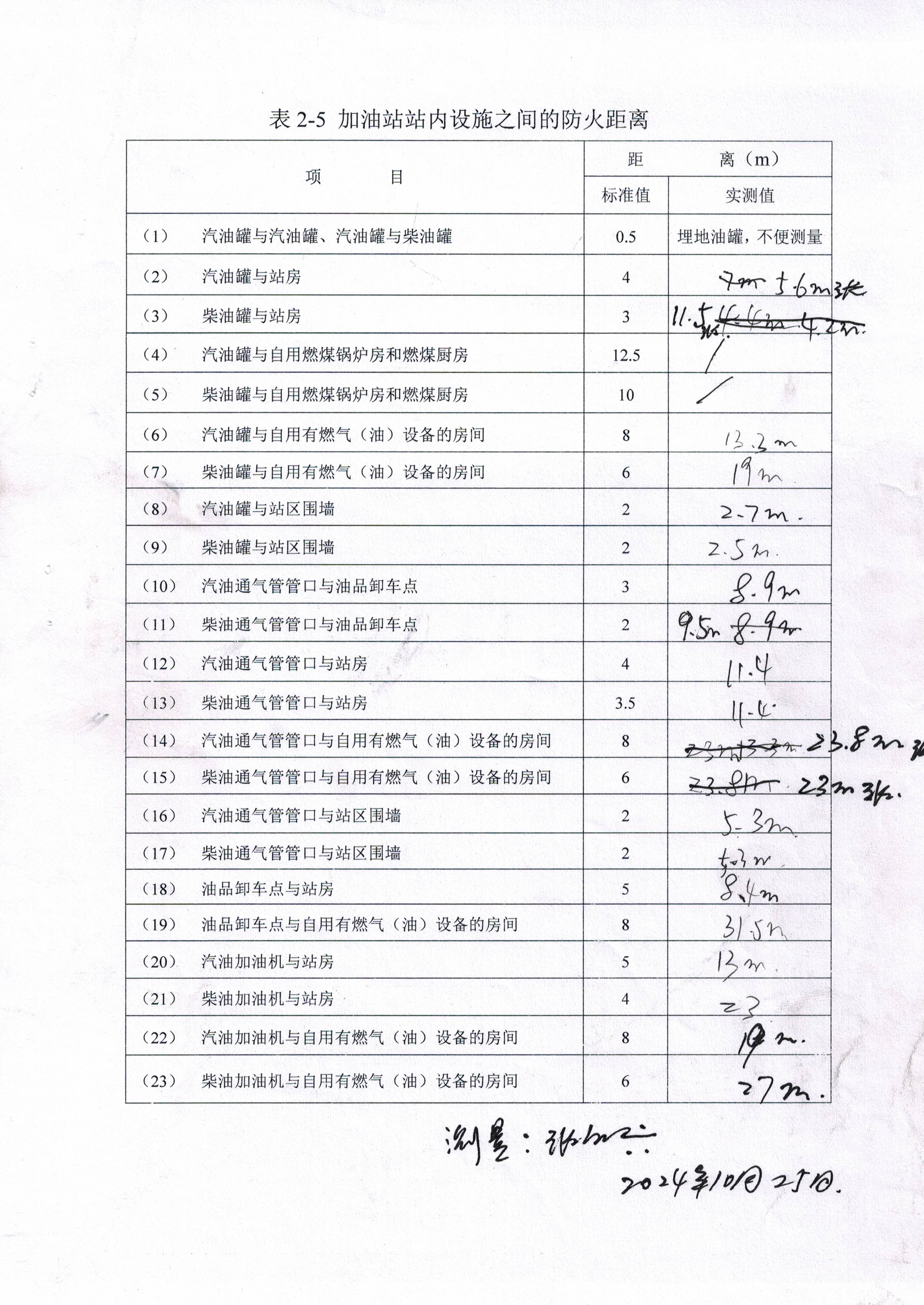 評價結(jié)論為:曲靖市水城石化有限公司水城加油站已完成本次評價發(fā)現(xiàn)的不符合項整改,站址選擇及平面布置、加油工藝及設(shè)施、消防設(shè)施、電氣及報警系統(tǒng)、建(構(gòu))筑物等方面符合《汽車加油加氣加氫站技術(shù)標(biāo)準(zhǔn)》(GB50156-2021)、《加油站作業(yè)安全規(guī)范》(AQ3010-2022)標(biāo)準(zhǔn)規(guī)定;經(jīng)營場所、危險化學(xué)品儲存設(shè)施、人員配置及培訓(xùn)考核、安全管理制度、安全操作規(guī)程、應(yīng)急預(yù)案、應(yīng)急物資滿足《危險化學(xué)品安全管理條例》(國務(wù)院令第591號,第645號修改)第三十四條、《危險化學(xué)品經(jīng)營許可證管理辦法》(原國家安監(jiān)總局令第55號公布,第79號令修正)第六條要求,從安全的角度曲靖市水城石化有限公司水城加油站具備危險化學(xué)品經(jīng)營的安全條件。 | ||||||||