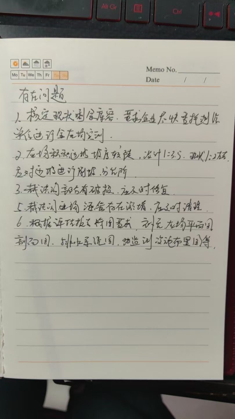 1、因擴容擴建工程尚未完成,目前貯灰場部分區(qū)域超過一期設計貯灰標高,根據西北有色勘測工程有限責任公司2025年4月出具的《云南紅河能投發(fā)電有限公司灰場現(xiàn)狀穩(wěn)定性評估報告》結論,貯灰場壩體處于穩(wěn)定狀態(tài),且灰場下游的居民搬遷工作已基本完成,當前風險處于可控狀態(tài),根據《國家能源局關于印發(fā)〈燃煤發(fā)電廠貯灰場安全監(jiān)督管理規(guī)定〉的通知》 國能發(fā)安全規(guī)〔2022〕53號第二十一條的規(guī)定,公司應加快擴容擴建工程的推進,在1年內按照正常貯灰場標準完成整治工作; 2、貯灰場的警示標志多處缺失,建議在貯灰場排洪豎井設置警示標志; 3、南側截洪溝有局部破損、淤泥堵現(xiàn)象,應及時清理和修復; 4、進灰場道路有揚塵現(xiàn)象,建議采取降塵措施; 5、沉降及位移觀測點處未編號,建議進行編號。