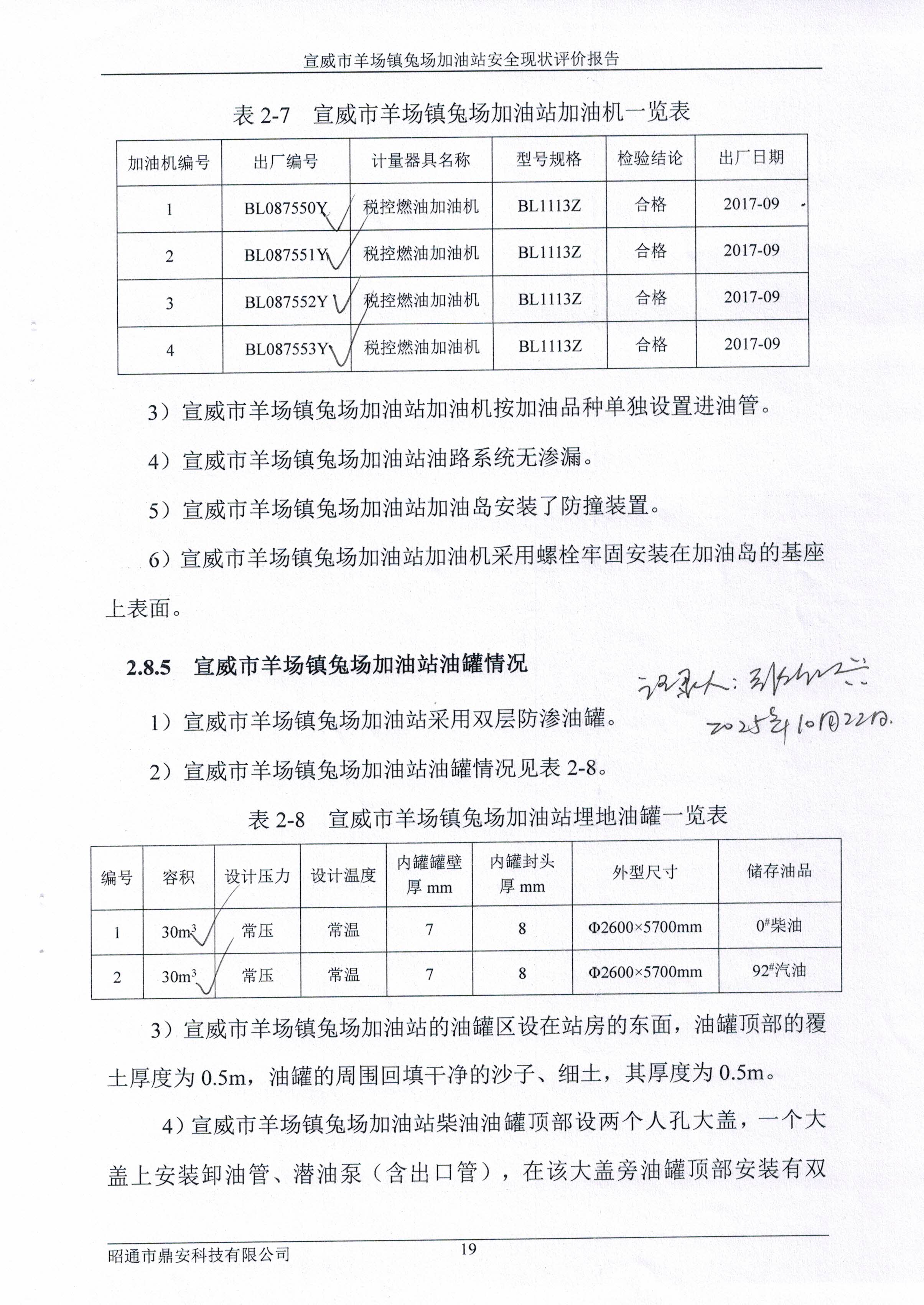 項(xiàng)目名稱(chēng) | 宣威市羊場(chǎng)鎮(zhèn)兔場(chǎng)加油站安全現(xiàn)狀評(píng)價(jià)報(bào)告 | 合同編號(hào) | DAAPQJ2025-12 | |||||