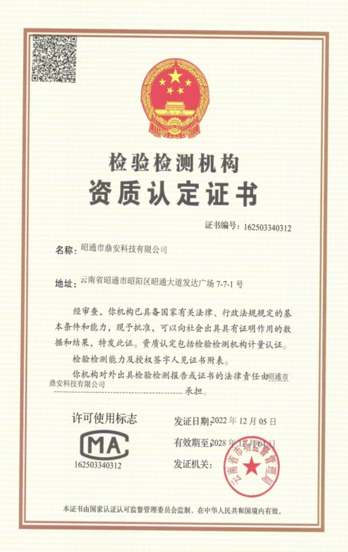 檢驗(yàn)檢測(cè)機(jī)構(gòu)資質(zhì)認(rèn)定證書(shū)