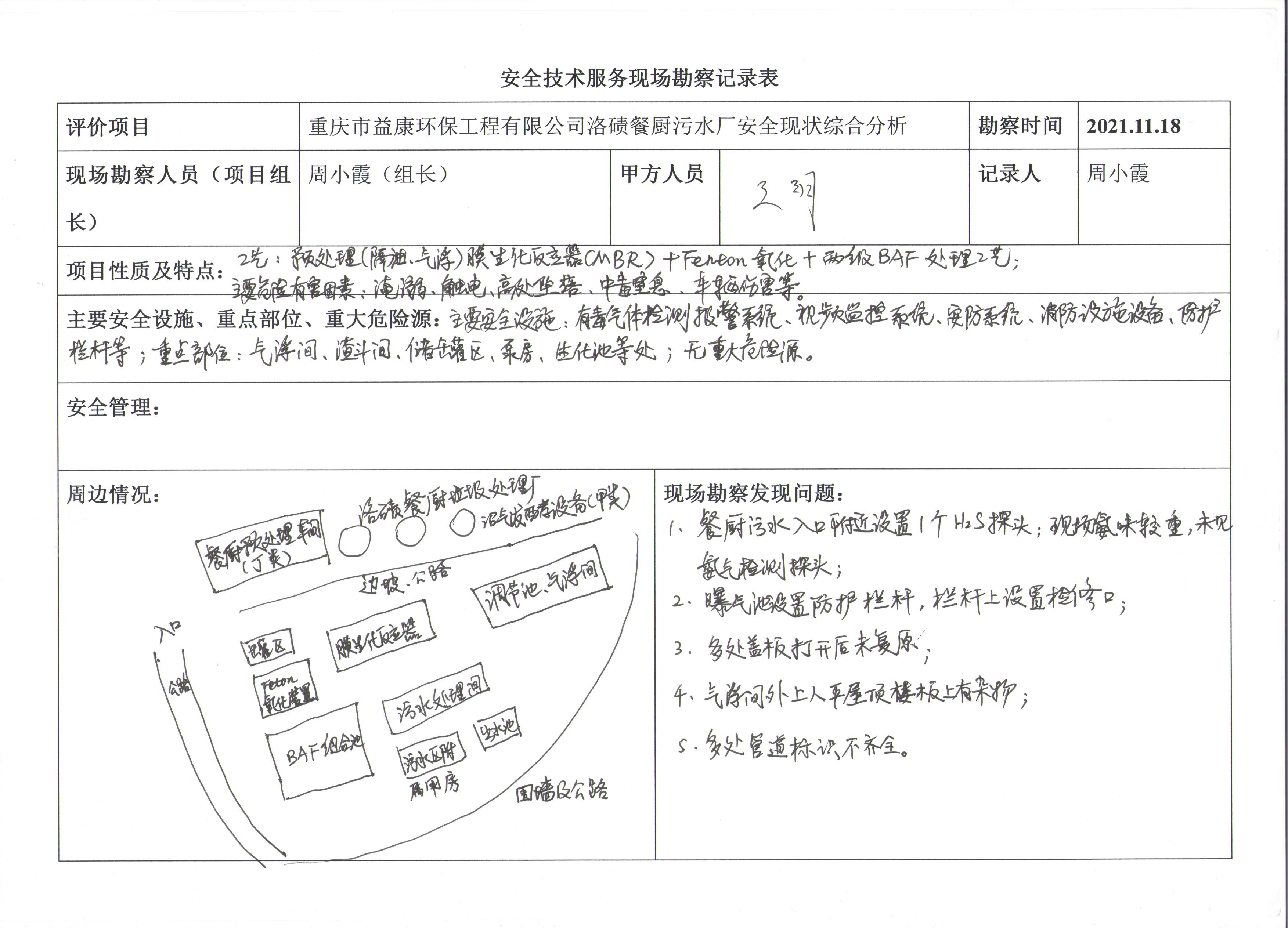 現場勘查情況 | 重慶市益康環(huán)保工程有限公司洛磧餐廚污水廠安全狀情況 | |||||||