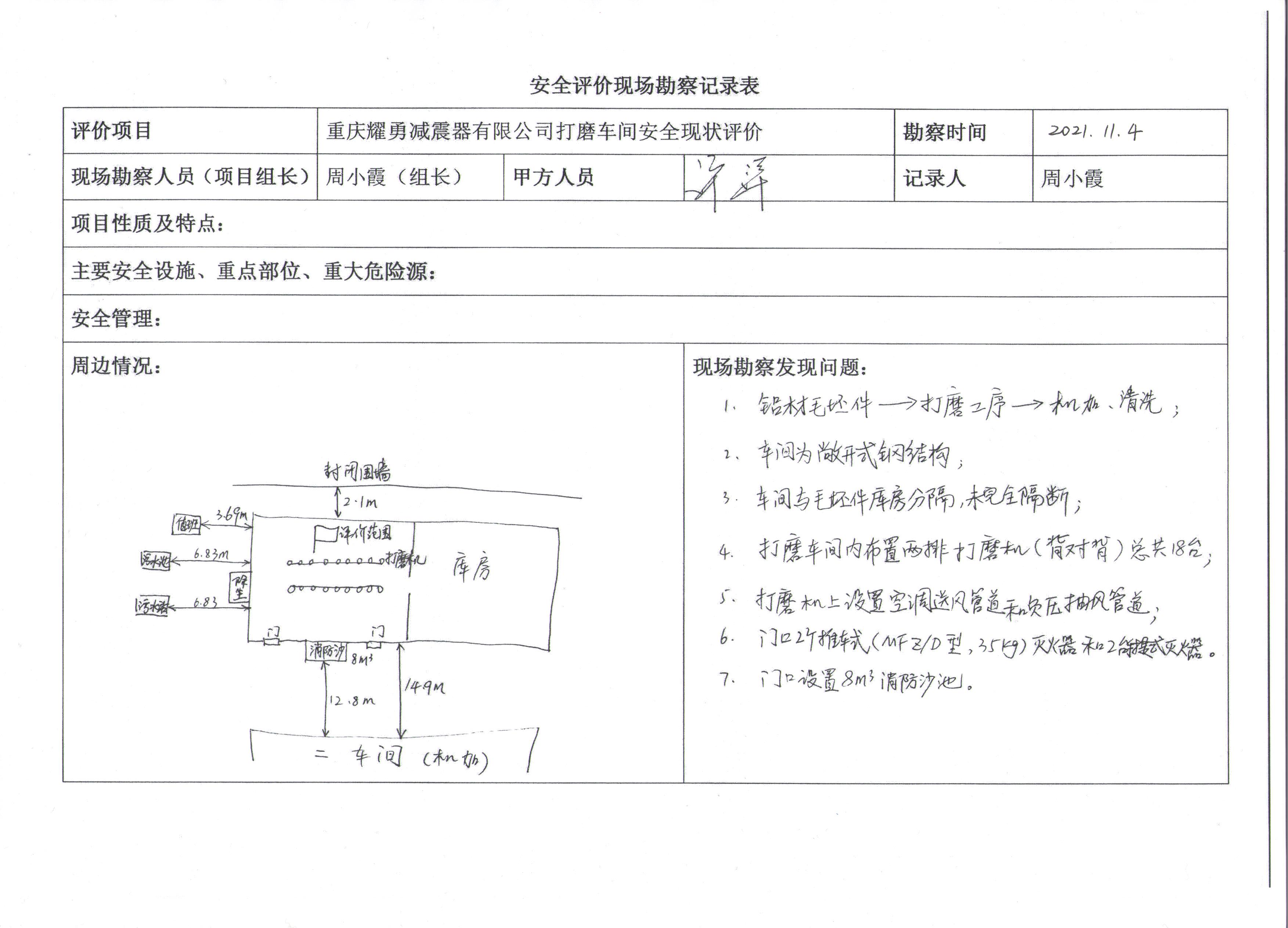 項目名稱 | 重慶耀勇減震器有限公司打磨車間安全現(xiàn)狀評價報告 | 合同編號 | DA(渝)-PJ-2021004 | |||||