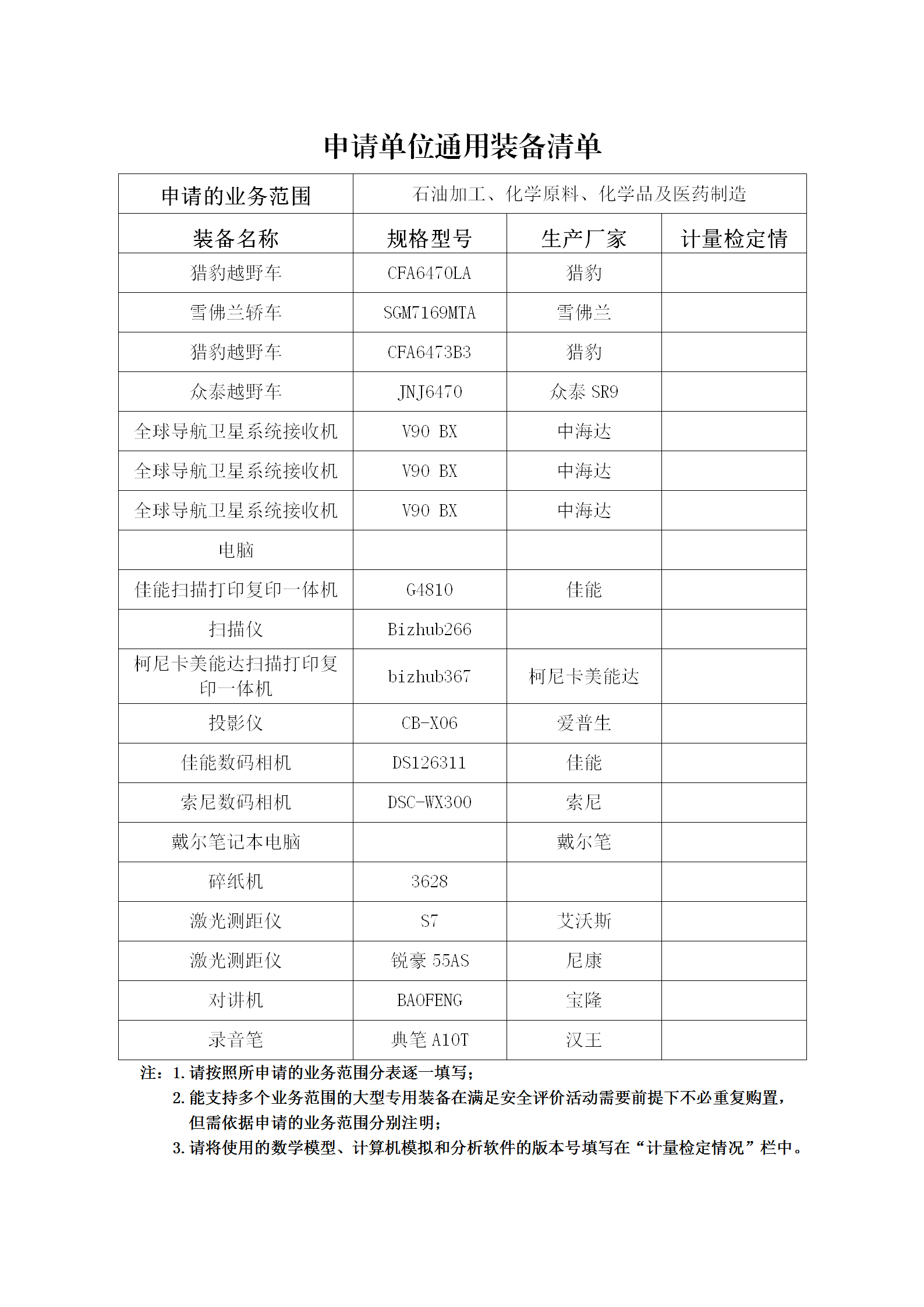昭通市鼎安科技有限公司專業(yè)設(shè)備、設(shè)施一覽表